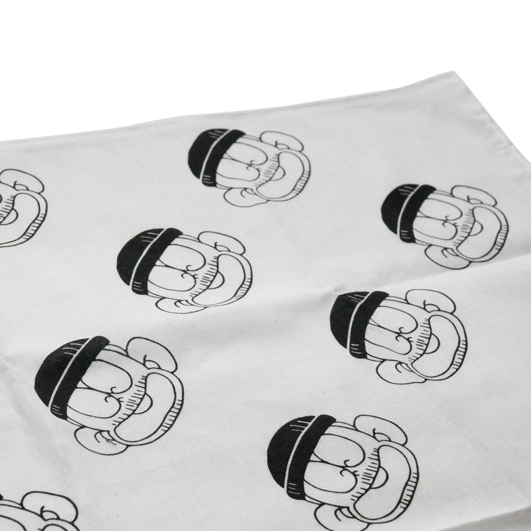 アイコン的キャラクター"チョモラ君"をたくさんプリントした遊び心満載のバンダナ。