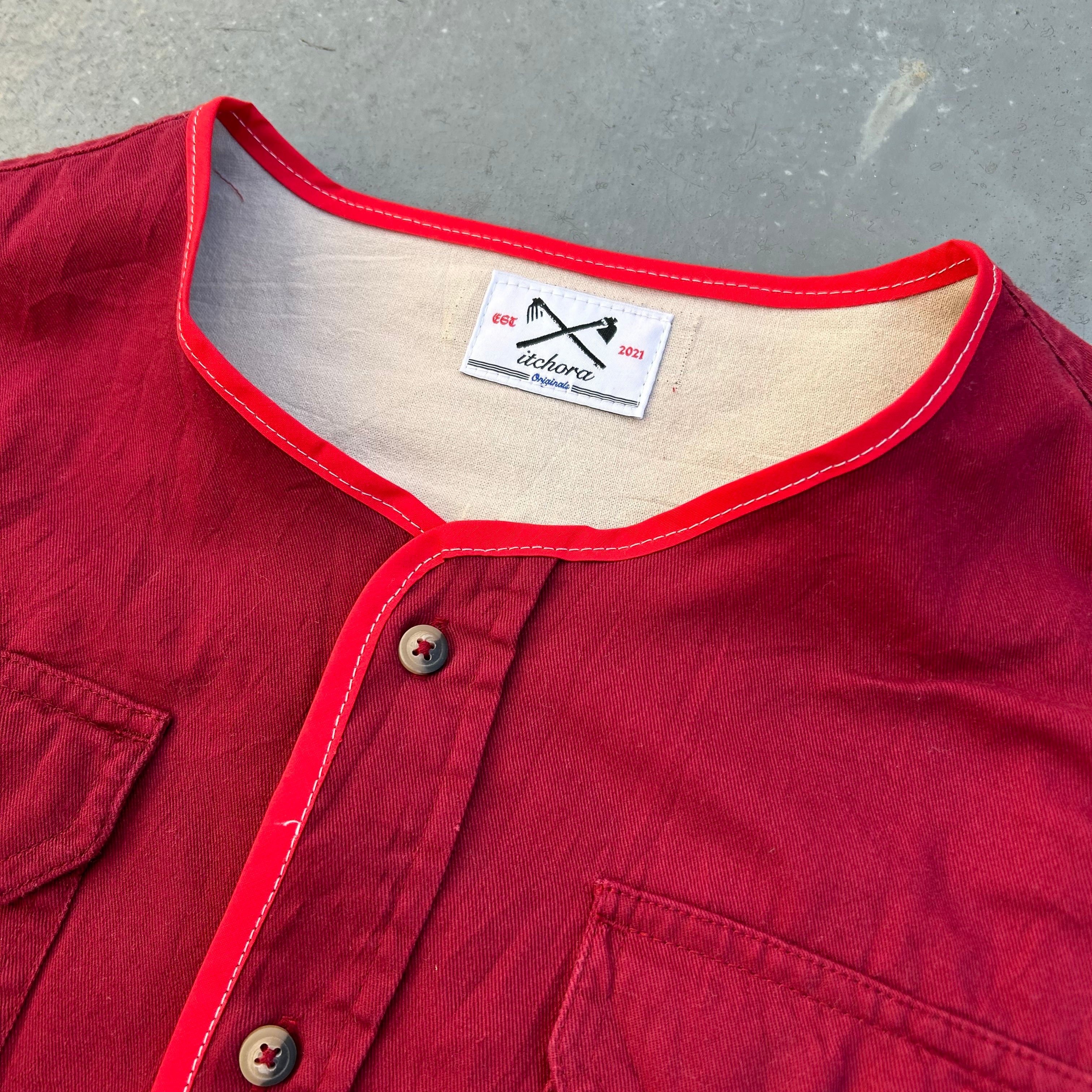 秋冬にも一度リリースした1980年台のワークシャツをベースにノーカラーやパイピングを施し、1から再構築したベースボール風シャツです。