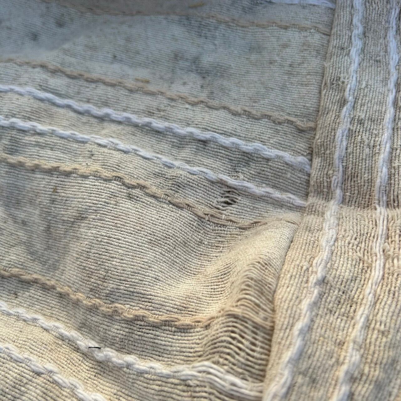 今回は2ヶ月かけて染め上げたインドの織生地を大胆に2枚使用し、パッチワークに仕上げました。